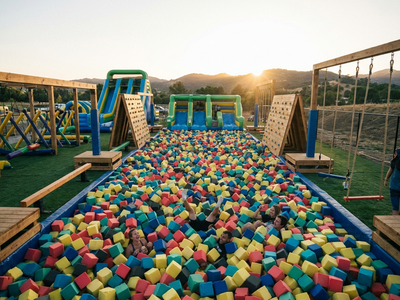 Test your agility and strength on our challenging obstacle course ending in a massive foam pit.